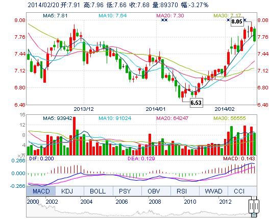 | 今 開: | 7.91 | 成交量: | 8.94萬手 | 振 幅: | 3.78% |