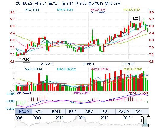 | 今 開: | 8.61 | 成交量: | 4.86萬手 | 振 幅: | 2.79% |