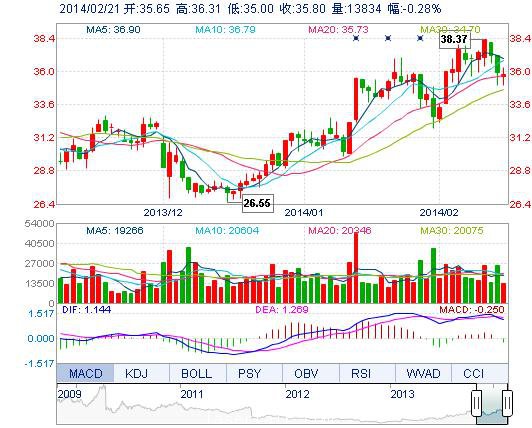 | 今 開: | 35.65 | 成交量: | 1.38萬手 | 振 幅: | 3.65% |
