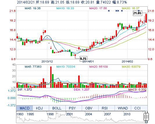 | 最 高: | 21.05 | 成交額: | 1.48億元 | 換手率: | 4.26% |
