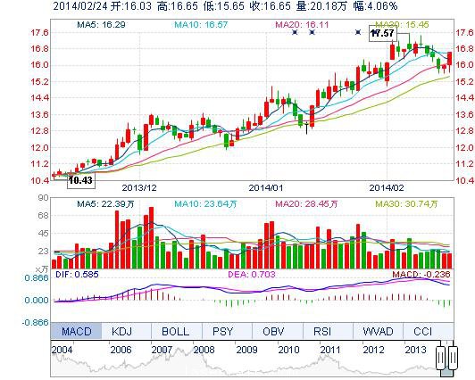 今開: 16.03 成交量: 20.18萬(wan) 手 振幅: 6.25% 最高: 16.65 成交額: 3.27億(yi) 元 換手率: 2.12% 最低: 15.65 總市值: 175.20億(yi) 市淨率: 4.98 昨收: 16.00 流通市值...