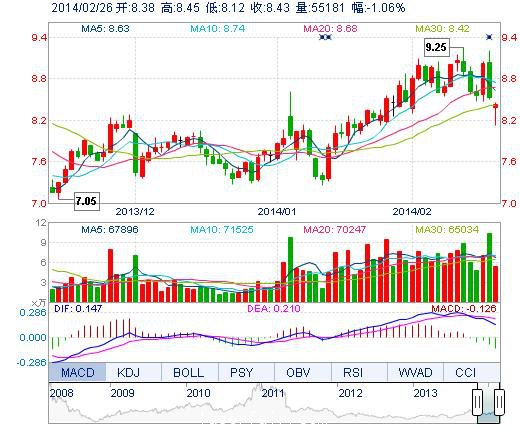 今開: 8.38 成交量: 5.52萬(wan) 手 振幅: 3.87% 最高: 8.45 成交額: 4587.19萬(wan) 元 換手率: 2.01% 最低: 8.12 總市值: 24.03億(yi) 市淨率: 3.85 昨收: 8.52 流通市值: ...