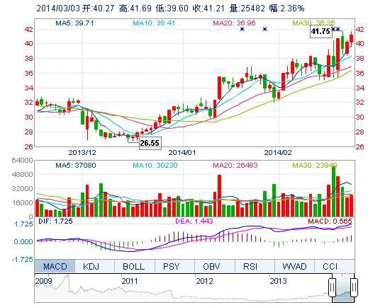 | 最 高: | 41.69 | 成交額: | 1.03億元 | 換手率: | 0.74% |