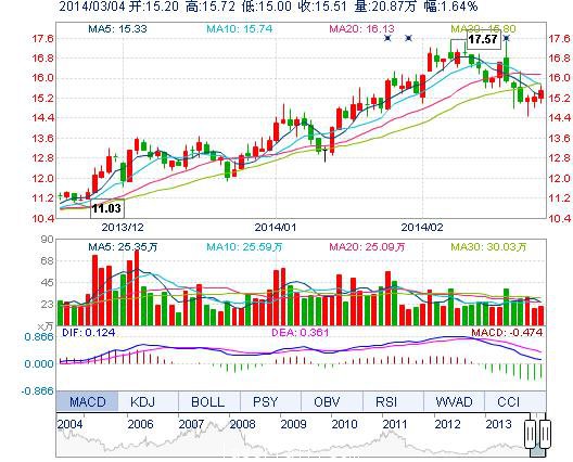 | 最 高: | 15.72 | 成交額: | 3.22億元 | 換手率: | 2.19% |