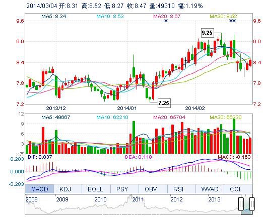 | 今 開: | 8.31 | 成交量: | 4.93萬手 | 振 幅: | 2.99% |