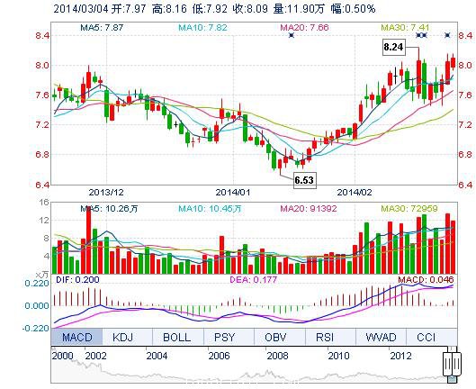 | 今 開: | 7.97 | 成交量: | 11.90萬手 | 振 幅: | 2.98% |