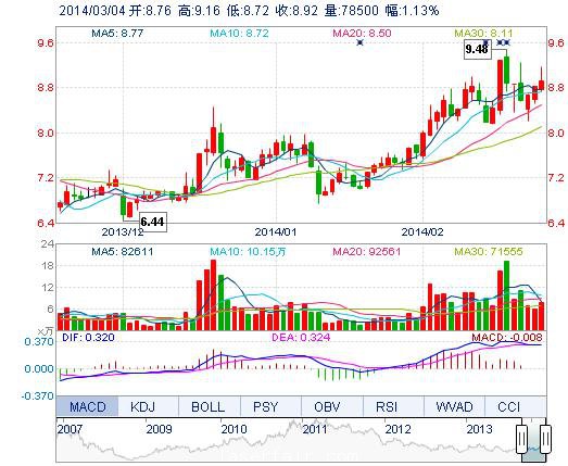 今開: 8.76 成交量: 7.85萬(wan) 手 振幅: 4.99% 最高: 9.16 成交額: 7061.92萬(wan) 元 換手率: 3.94% 最低: 8.72 總市值: 17.77億(yi) 市淨率: 3.62 昨收: 8.82 流通市值: ...