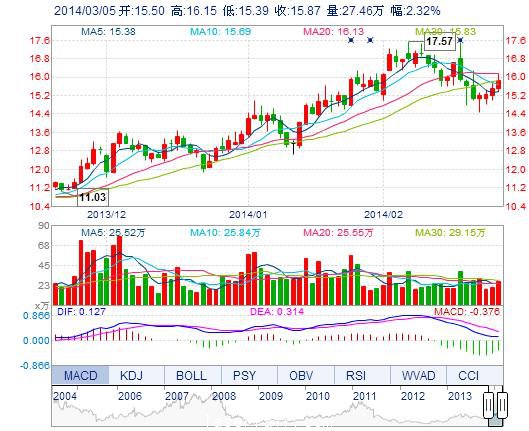 今開: 15.50 成交量: 27.46萬(wan) 手 振幅: 4.90% 最高: 16.15 成交額: 4.35億(yi) 元 換手率: 2.88% 最低: 15.39 總市值: 166.99億(yi) 市淨率: 4.74 昨收: 15.51 流通市值...