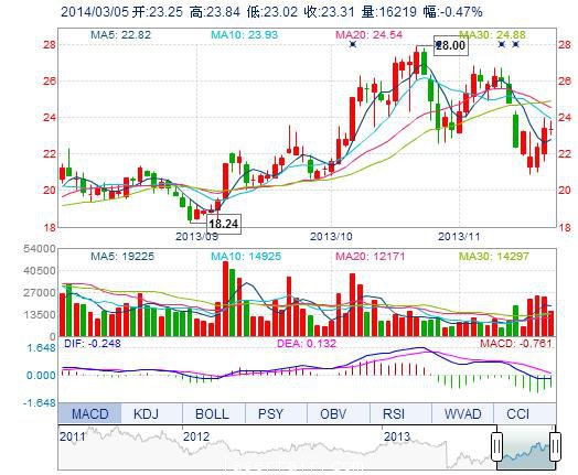 | 今 開: | 23.25 | 成交量: | 1.62萬手 | 振 幅: | 3.50% |