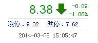 | 最 高: | 8.54 | 成交額: | 3294.37萬元 | 換手率: | 1.42% |