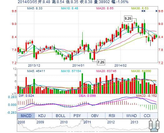 | 今 開: | 8.48 | 成交量: | 3.89萬手 | 振 幅: | 2.24% |