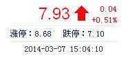 | 今 開: | 7.86 | 成交量: | 7.68萬手 | 振 幅: | 3.17% |