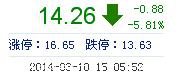 | 最 高: | 14.93 | 成交額: | 3.25億元 | 換手率: | 2.35% |