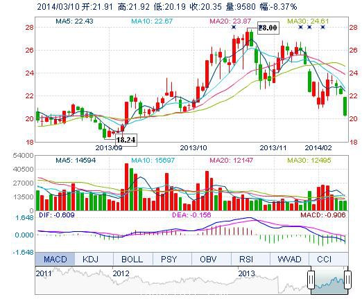 今開: 21.91 成交量: 9580手 振幅: 7.79% 最高: 21.92 成交額: 2013.36萬(wan) 元 換手率: 4.42% 最低: 20.19 總市值: 14.25億(yi) 市淨率: 4.87 昨收: 22.21 流通市值...