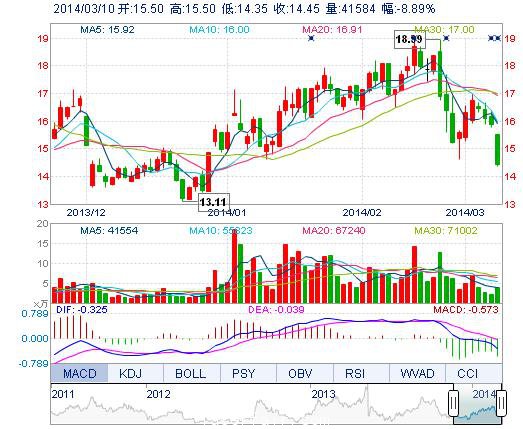 今開: 15.50 成交量: 4.16萬(wan) 手 振幅: 7.25% 最高: 15.50 成交額: 6194.08萬(wan) 元 換手率: 6.07% 最低: 14.35 總市值: 19.36億(yi) 市淨率: 5.90 昨收: 15.86 流通市...