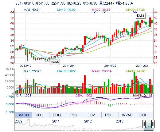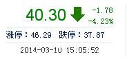 | 今 開: | 41.30 | 成交量: | 2.24萬手 | 振 幅: | 3.97% |