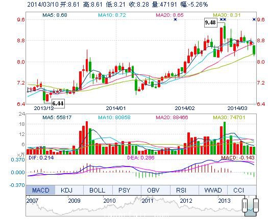 | 今 開: | 8.61 | 成交量: | 4.72萬手 | 振 幅: | 4.58% |