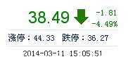 今開: 39.99 成交量: 2.59萬(wan) 手 振幅: 5.88% 最高: 39.99 成交額: 9917.90萬(wan) 元 換手率: 0.75% 最低: 37.62 總市值: 166.77億(yi) 市淨率: 10.27 昨收: 40.30 流通...