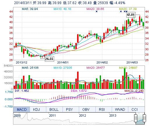 | 最 高: | 39.99 | 成交額: | 9917.90萬元 | 換手率: | 0.75% |