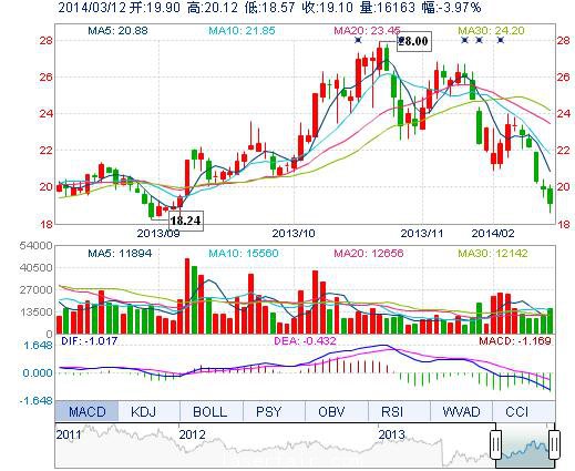 今開: 19.90 成交量: 1.62萬(wan) 手 振幅: 7.79% 最高: 20.12 成交額: 3104.75萬(wan) 元 換手率: 7.46% 最低: 18.57 總市值: 13.37億(yi) 市淨率: 4.57 昨收: 19.89 流通市...