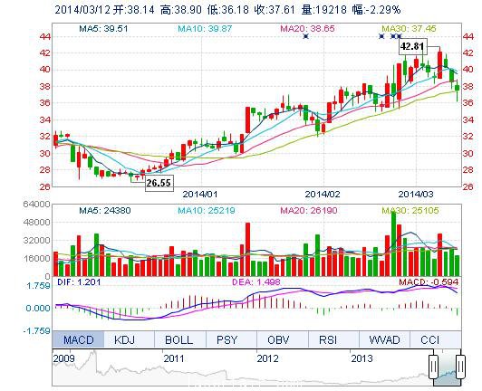 今開: 38.14 成交量: 1.92萬(wan) 手 振幅: 7.07% 最高: 38.90 成交額: 7226.16萬(wan) 元 換手率: 0.56% 最低: 36.18 總市值: 162.95億(yi) 市淨率: 10.03 昨收: 38.49 流通...