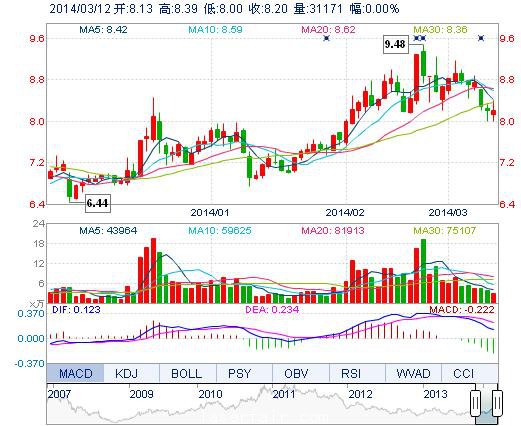 | 今 開: | 8.13 | 成交量: | 3.12萬手 | 振 幅: | 4.76% |