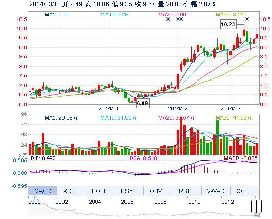 | 今 開: | 9.49 | 成交量: | 28.83萬手 | 振 幅: | 7.55% |