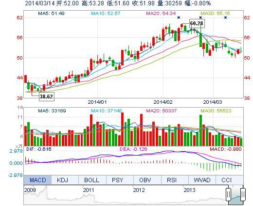 | 昨 收: | 52.40 | 流通市值: | 149.30億 | 市盈率TTM: | 63.49 |
