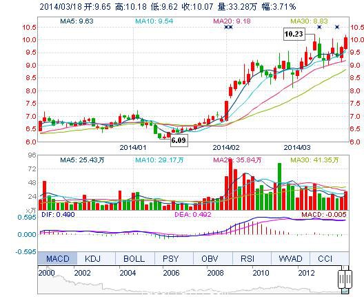 | 最 高: | 10.18 | 成交額: | 3.30億元 | 換手率: | 3.73% |