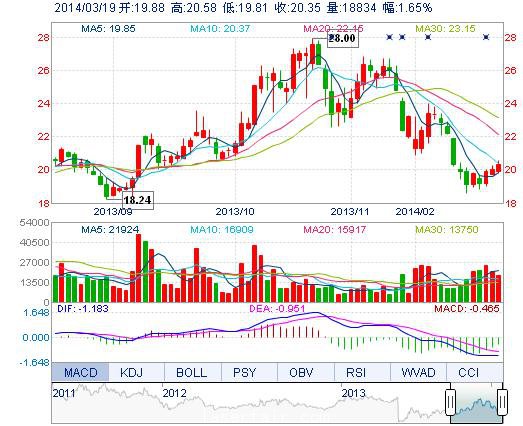| 今 開: | 19.88 | 成交量: | 1.88萬手 | 振 幅: | 3.85% |