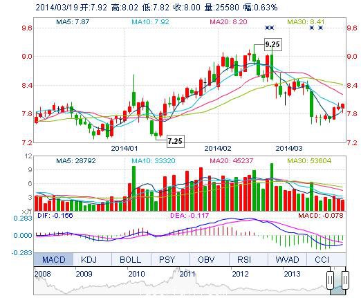 今 開: | 7.92 | 成交量: | 2.56萬手 | 振 幅: | 2.52% |
