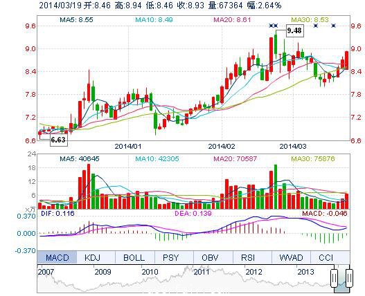| 今 開: | 8.46 | 成交量: | 6.74萬手 | 振 幅: | 5.52% |