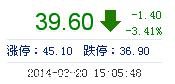 | 今 開: | 40.90 | 成交量: | 1.73萬手 | 振 幅: | 5.12% |