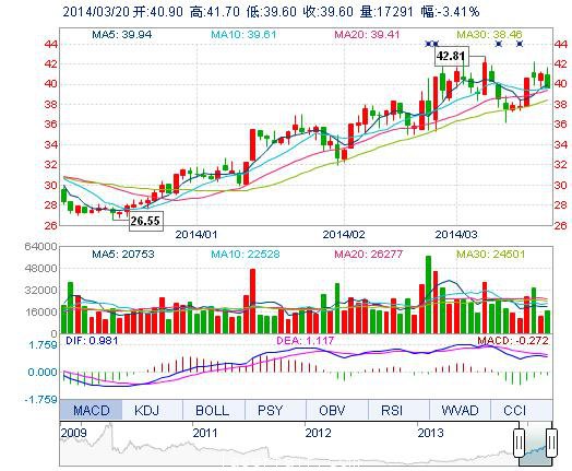 今開: 40.90 成交量: 1.73萬(wan) 手 振幅: 5.12% 最高: 41.70 成交額: 7034.80萬(wan) 元 換手率: 0.50% 最低: 39.60 總市值: 171.58億(yi) 市淨率: 10.56 昨收: 41.00 流通...