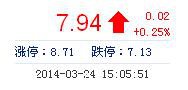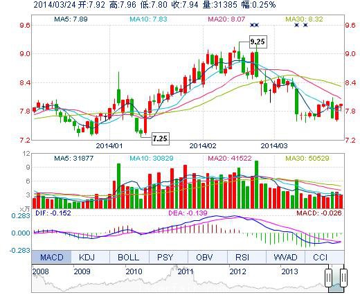 | 今 開: | 7.92 | 成交量: | 3.14萬手 | 振 幅: | 2.02% |