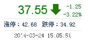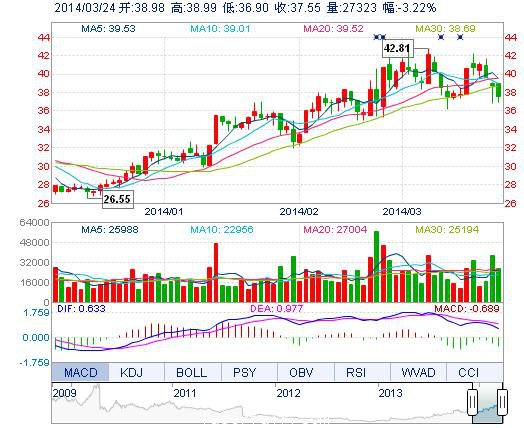 今開: 38.98 成交量: 2.73萬(wan) 手 振幅: 5.39% 最高: 38.99 成交額: 1.03億(yi) 元 換手率: 0.79% 最低: 36.90 總市值: 162.69億(yi) 市淨率: 9.75 昨收: 38.80 流通市值...