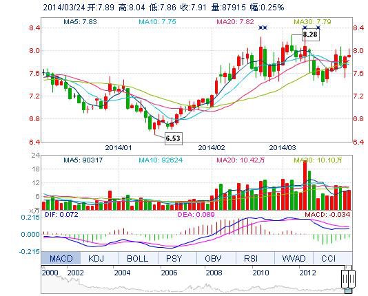 | 今 開: | 7.89 | 成交量: | 8.79萬手 | 振 幅: | 2.28% |