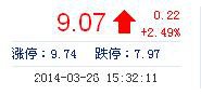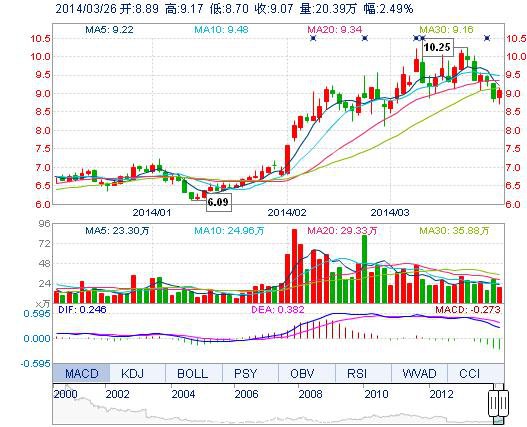 今開: 8.89 成交量: 20.39萬(wan) 手 振幅: 5.31% 最高: 9.17 成交額: 1.84億(yi) 元 換手率: 2.29% 最低: 8.70 總市值: 80.82億(yi) 市淨率: 3.04 昨收: 8.85 流通市值: 80...
