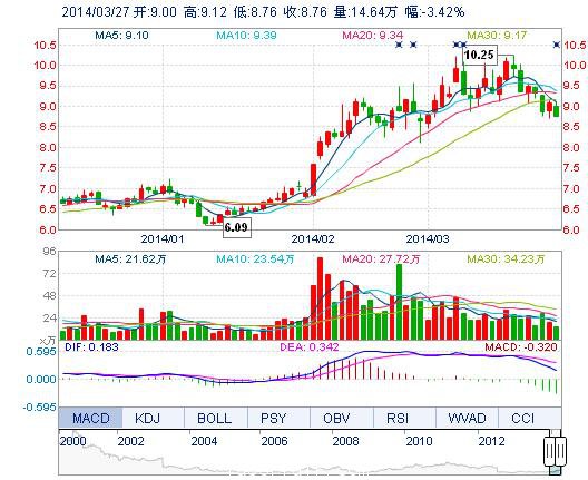 | 今 開: | 9.00 | 成交量: | 14.64萬手 | 振 幅: | 3.97% |