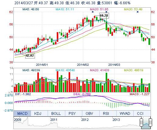 | 今 開: | 49.37 | 成交量: | 5.39萬手 | 振 幅: | 6.04% |