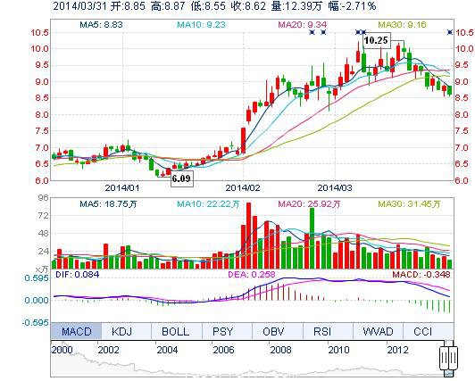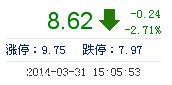 | 今 開: | 8.85 | 成交量: | 12.39萬手 | 振 幅: | 3.61% |
