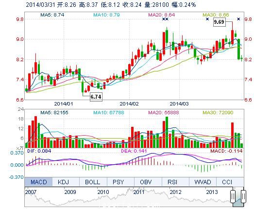 | 今 開: | 8.26 | 成交量: | 2.81萬手 | 振 幅: | 3.04% |
