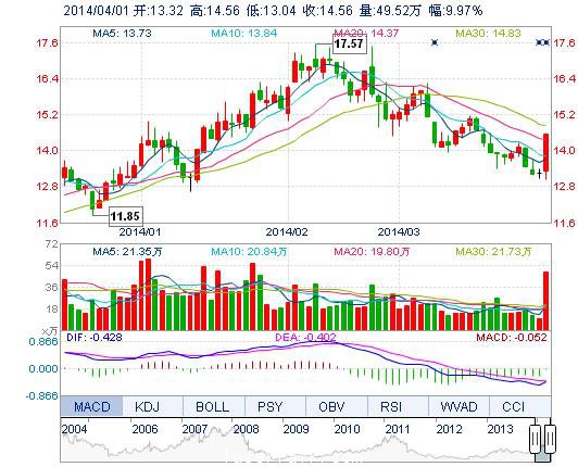 今開: 13.32 成交量: 49.52萬(wan) 手 振幅: 11.48% 最高: 14.56 成交額: 7.01億(yi) 元 換手率: 5.19% 最低: 13.04 總市值: 153.21億(yi) 市淨率: 4.35 昨收: 13.24 流通市...