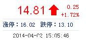 | 今 開: | 14.56 | 成交量: | 48.38萬手 | 振 幅: | 4.53% |