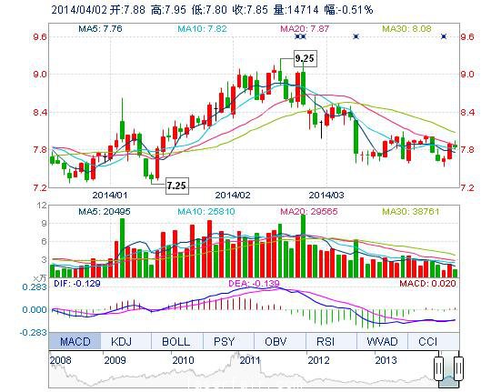 今開: 7.88 成交量: 1.47萬(wan) 手 振幅: 1.90% 最高: 7.95 成交額: 1155.89萬(wan) 元 換手率: 0.54% 最低: 7.80 總市值: 22.37億(yi) 市淨率: 3.59 昨收: 7.89 流通市值: ...