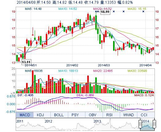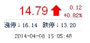| 今 開: | 14.50 | 成交量: | 1.34萬手 | 振 幅: | 2.32% |