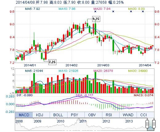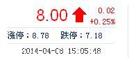 今 開: | 7.98 | 成交量: | 2.77萬手 | 振 幅: | 1.63% |
