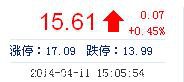 | 最 高: | 15.63 | 成交額: | 4.20億元 | 換手率: | 2.89% |