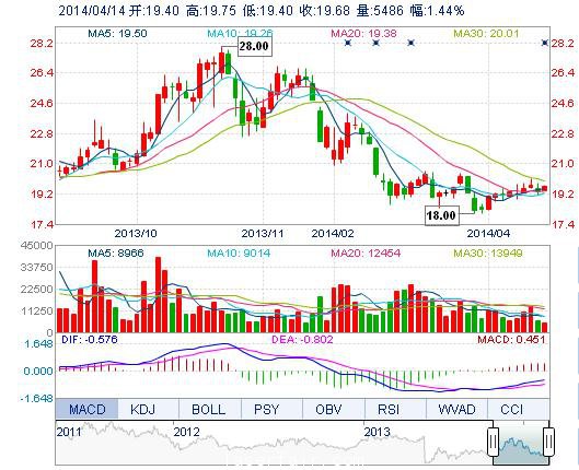 | 今 開: | 19.40 | 成交量: | 5486手 | 振 幅: | 1.80% |