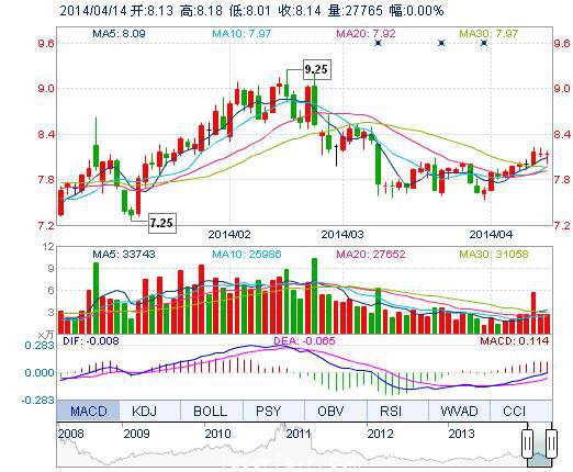 今開: 8.13 成交量: 2.78萬(wan) 手 振幅: 2.09% 最高: 8.18 成交額: 2246.83萬(wan) 元 換手率: 1.01% 最低: 8.01 總市值: 23.20億(yi) 市淨率: 3.72 昨收: 8.14 流通市值: ...